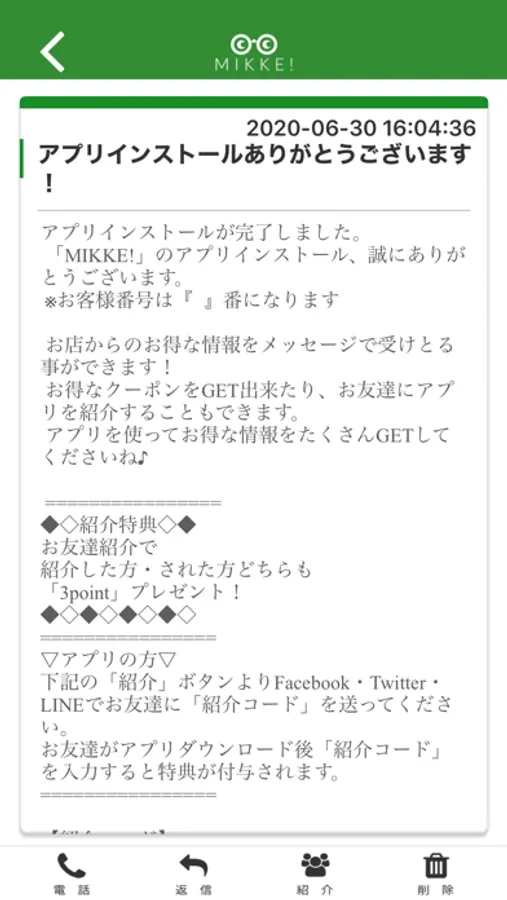 MIKKE!のアプリをSNSを通じてお友達に紹介する事ができます。