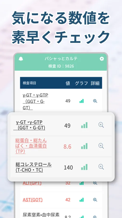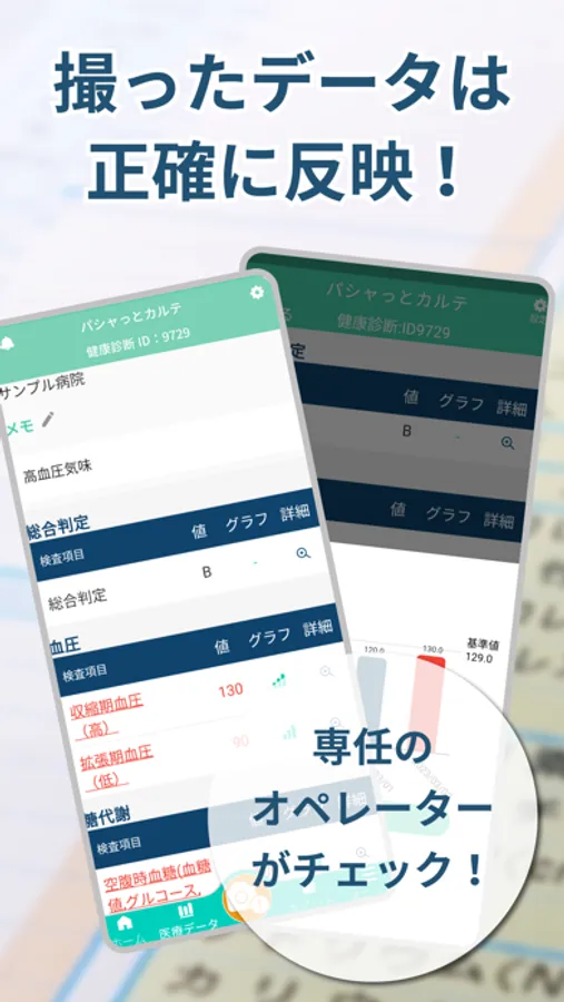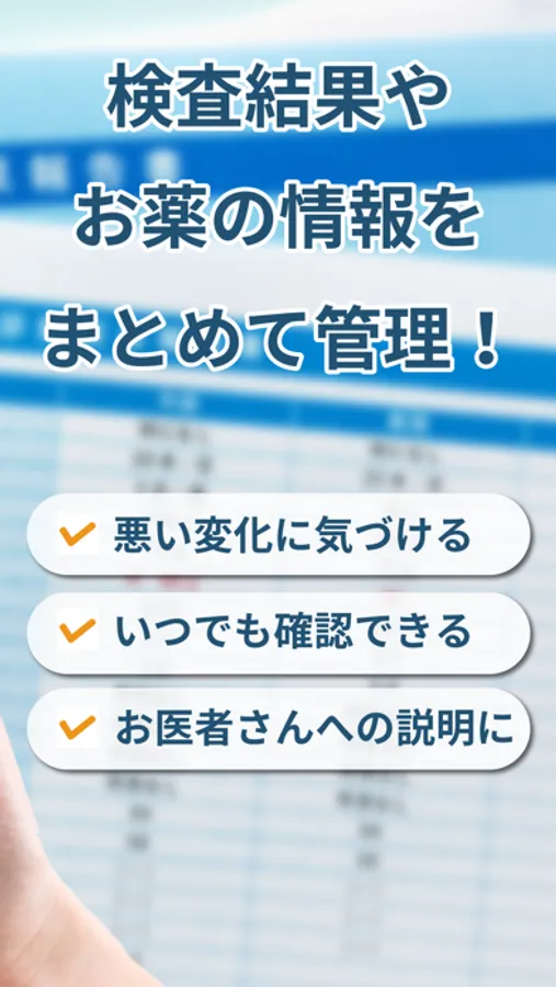 アプリに医療情報を預けておくことで、「気になる数値の変動の確認」や「お医者さんや薬剤師に説明する」等に活用していただいております。