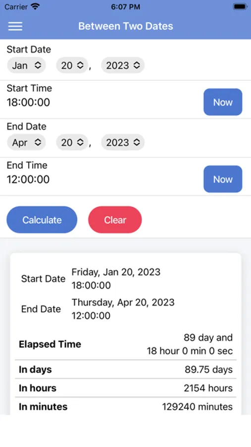Enter a start date and time and an end date and time to calculate the elapsed time.