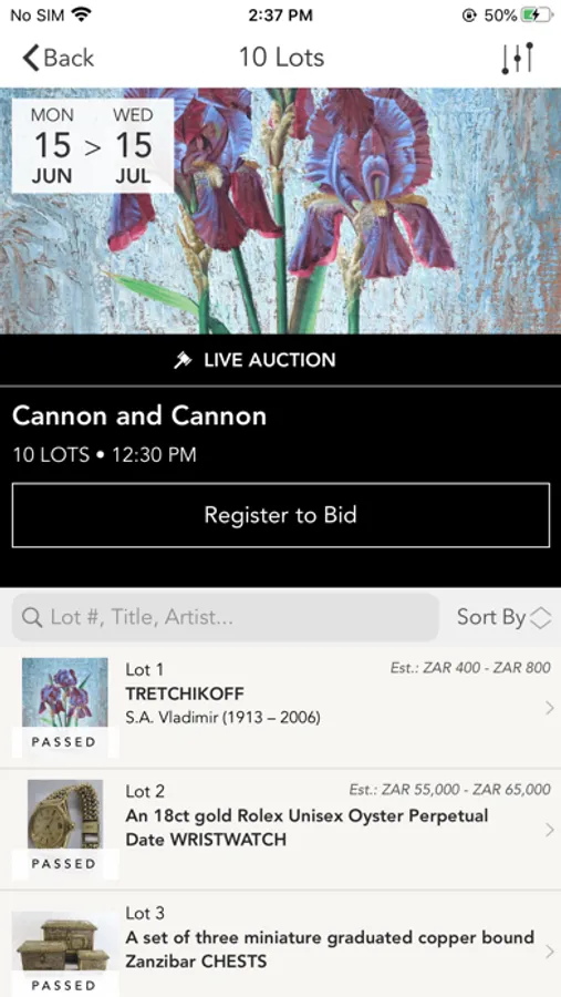 Cannon's Auctioneers have been trading in Pietermaritzburg, South Africa since 1943. The 4th generation family business specialize in the fields of Antiques, Collectables, Fine Art, Sculptures, Carpets, Militaria, Jewellery, Clocks, Silverware, Stamps, etc. •Quick Registration •Following upcoming lots of interest •Push notifications to ensure you engage on items of interest •Track bidding history and activity •Watch live auctions We conduct regular Catalogued Auctions and weekly Non-Catalogued General Household auctions on our premises. Are you looking for a specific rare item that you have not been able to find? Would you like to be placed on our mailing list? Email us and we will do the rest!