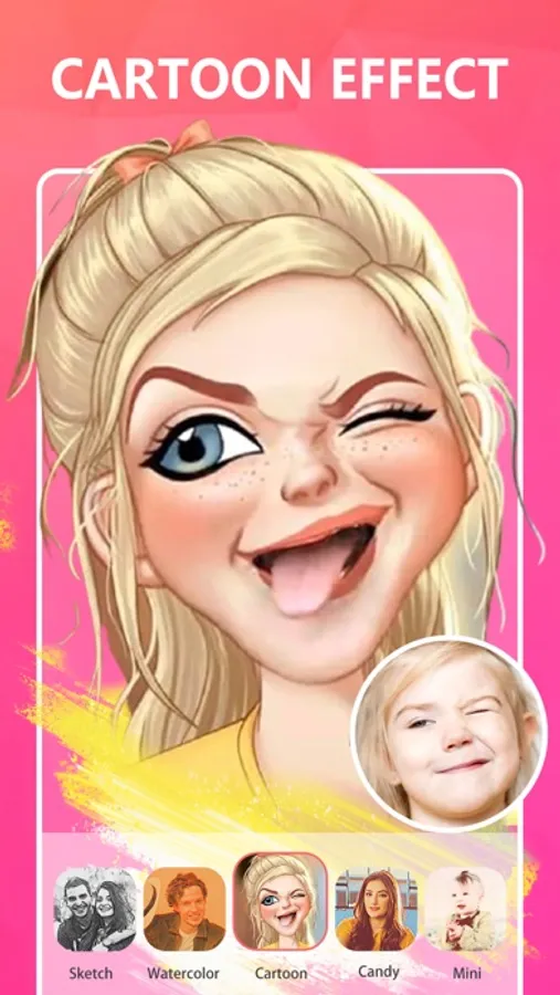 -Cartoon Effect present you with your exclusive comic figure. Sketching, watercolor, canvas painting and more effects are available. It’s about to get funny!