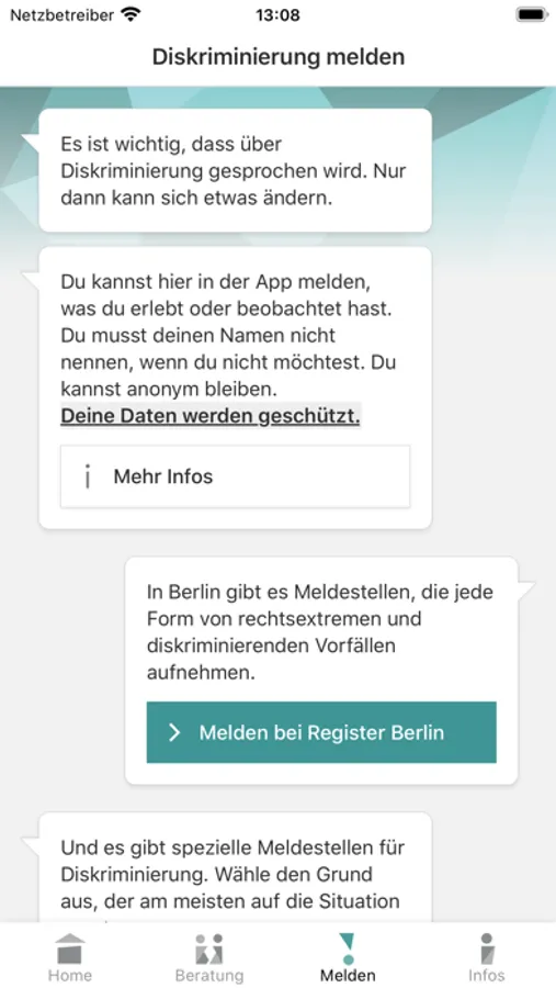Warum haben wir eine mobile App entwickelt? Wir wollen, dass Menschen bei Diskriminierung schnelle Hilfe zur Hand haben. Wir wollen, dass Menschen ihre Rechte kennen und wahrnehmen. Wir möchten Diskriminierung sichtbar machen. Es ist wichtig, dass über Diskriminierung gesprochen wird. Nur dann kann sich etwas ändern.