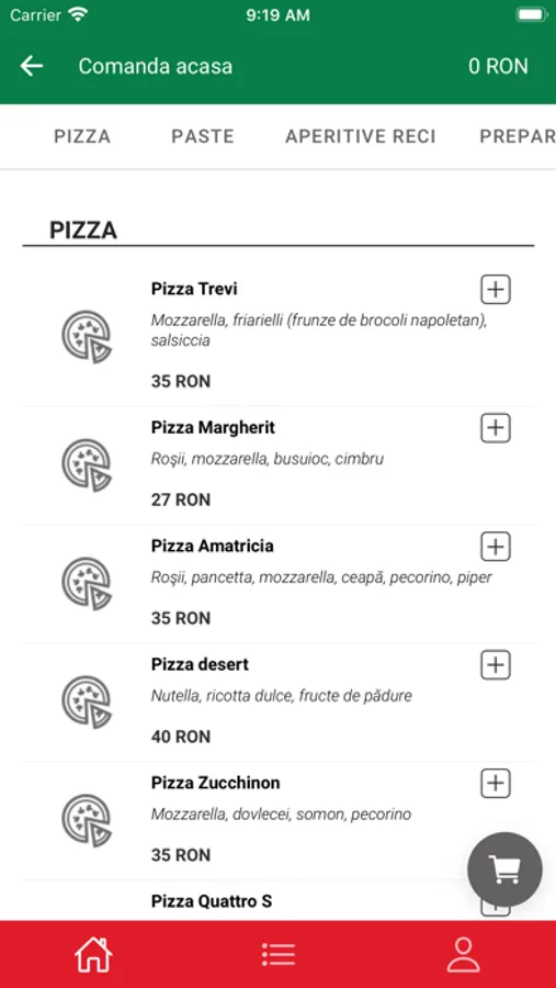 Trattoria Trevi iti pune a dispozitie un sistem de comenzi online exceptional, pentru a primi preparatele la birou sau acasa, in cel mai scurt timp posibil. Conculta cu mare incredere meniurile noastre si alege tot ce doresti.