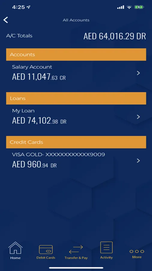 • Consolidated view of all your accounts, deposits, financing, and cards