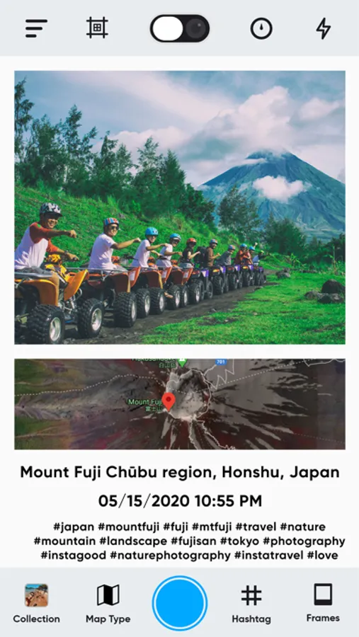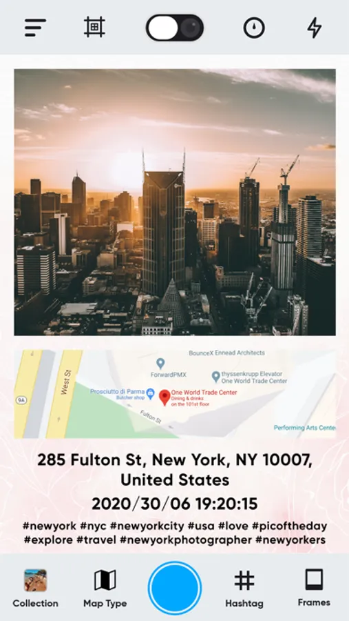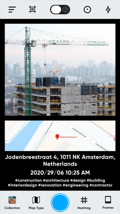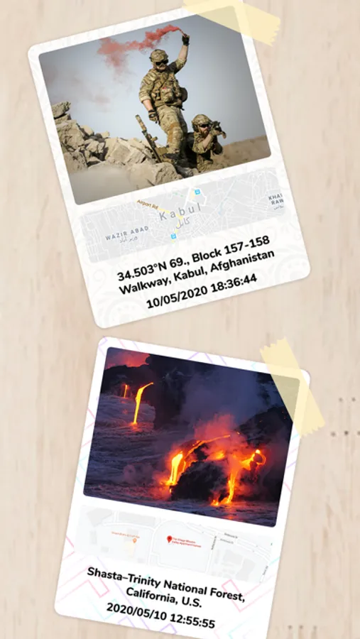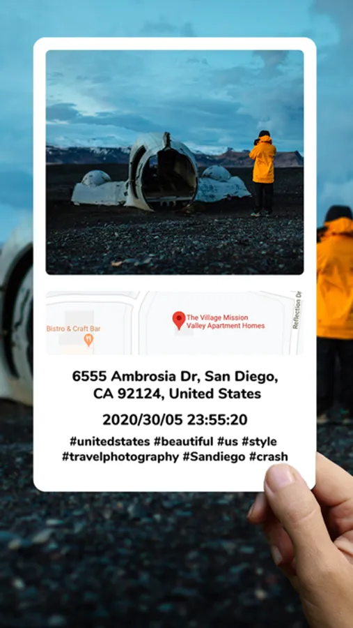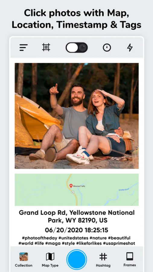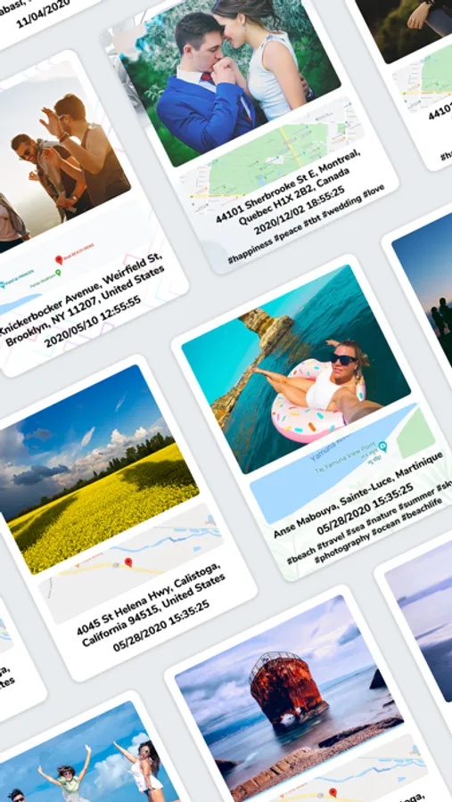 - Watermark photos with Hashtags, date time stamp, geo-location & Map