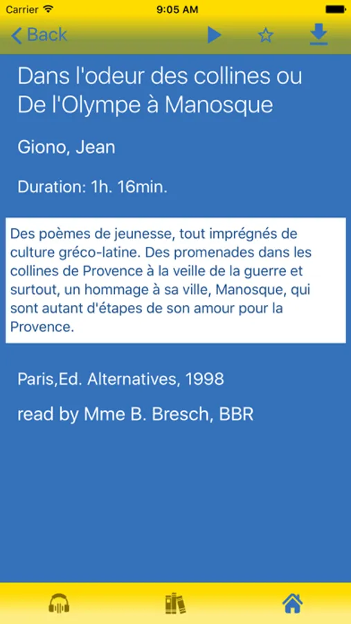 BBR Player est basée sur l’application de téléchargement et de lecture de livres audio de la Bibliothèque Sonore Romande (BSR)
