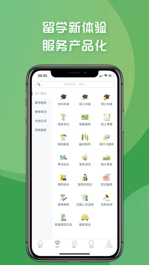 • 服务多样化 - 所有留学生相关服务都在app一键可查,签证,居留,申请(本/硕/博),翻译,租房,维修,二手... 应有尽有