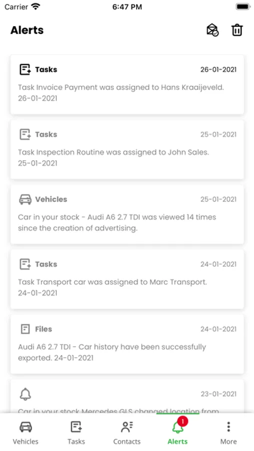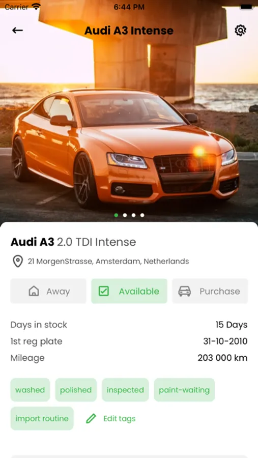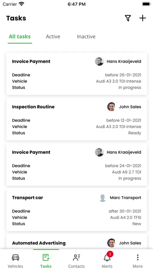 Insight into the overall Workflow. Also insight per car which activities need to be handled. Your own, unique, Automotive Workflow transparent via the App.