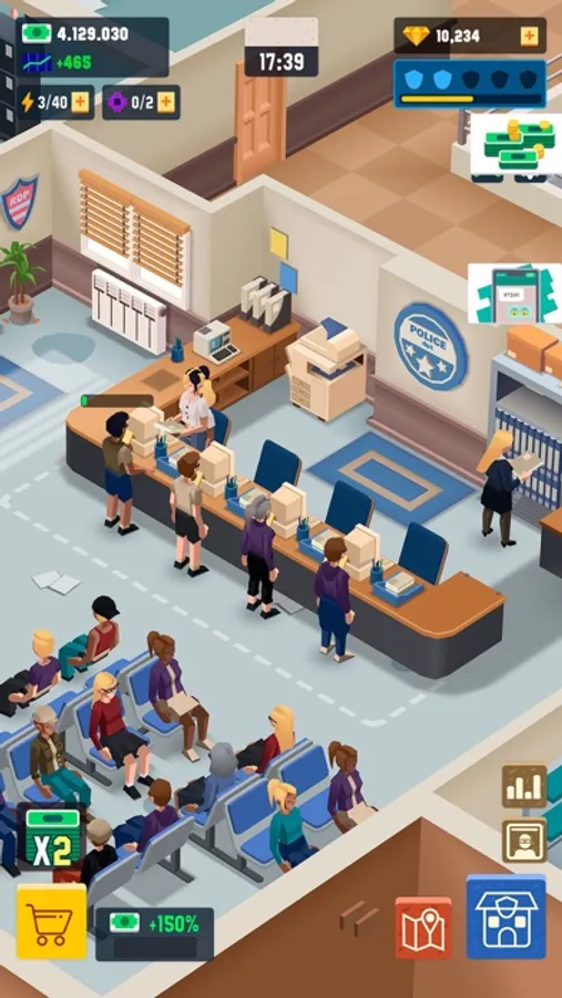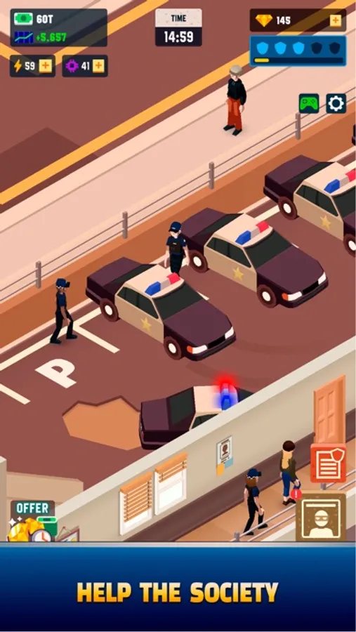 Your district will need the best working team in town. Study the situation regularly and hire workers according to your workflow and growth strategy. All employees and their departments will cover important needs in your business, and you should manage your team intelligently to make your police station profitable. Unlock famous police officers and be the scourge of the crime!