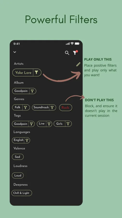 4. Filters. Filter music based on genres, languages, artists, instruments, release year, and so much more... You not algorithms are in charge here.