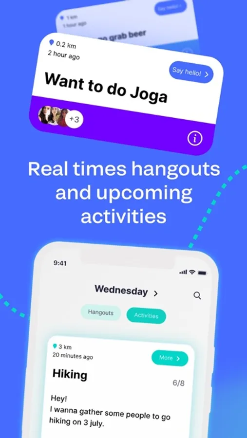 Lets users create and join casual hangouts. When posting a hangout, other user can click the «join” in the post. This will notify the creator of the hangout that somebody says “hello” in the hangout. The creator can then decide if this person should be accepted or not. If accepted, the new member of the hangout will automatically be given equal rights to accept and invite other new and exciting people into the hangout.