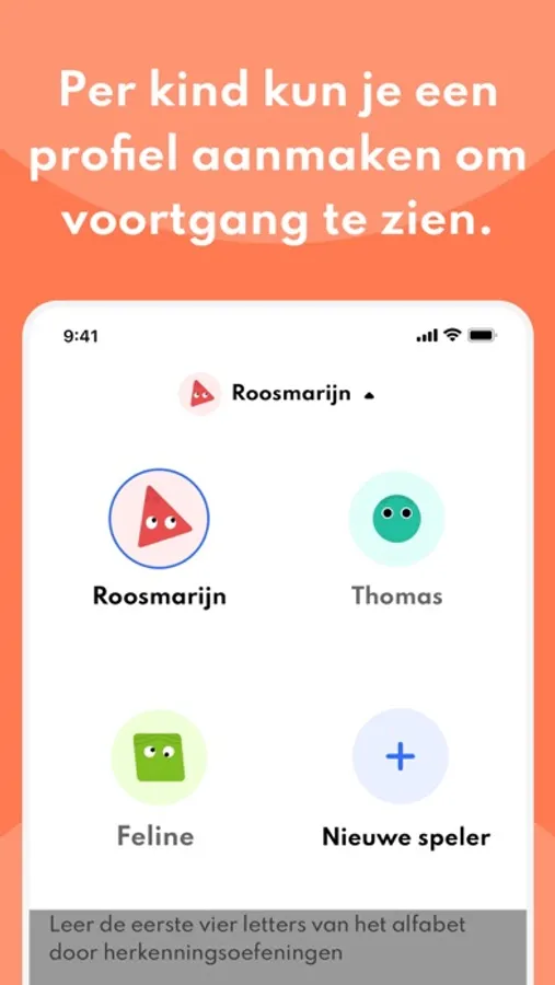 - Heb je meerdere kinderen die het alfabet willen leren? Je kan meerdere spelers aanmaken, zo heeft elk kind zijn of haar eigen voortgang!