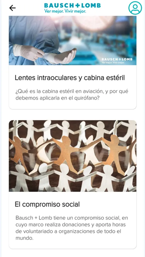 Descubre la app de BAUSCH + LOMB para profesionales sanitarios en la especialidad de oftalmología. Accede a contenido actualizado: ponencias y conferencias grabadas de simposios y cursos, calendario con eventos y congresos a nivel nacional e internacional, entrevistas, artículos exclusivos, publicaciones y mucho más.