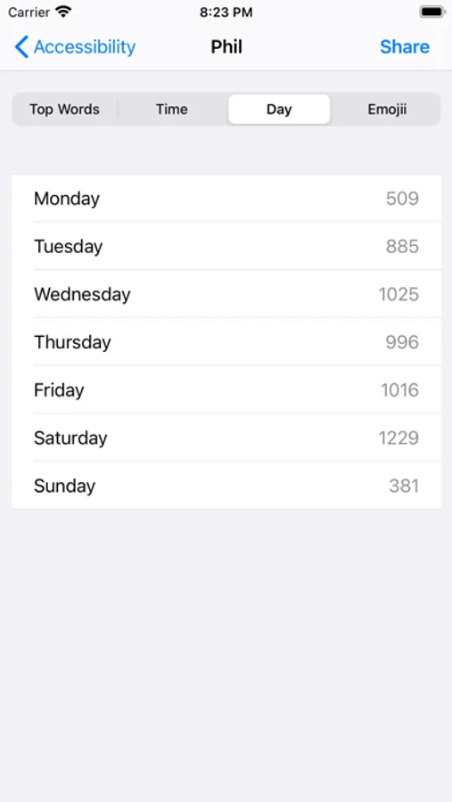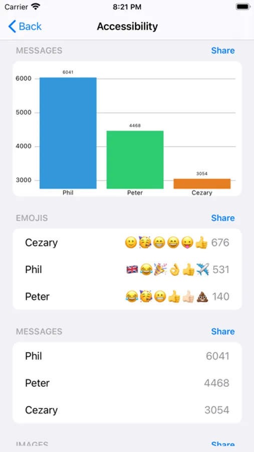 You can then preview the stats - all stats will be saved for later access in the ChatStats app
