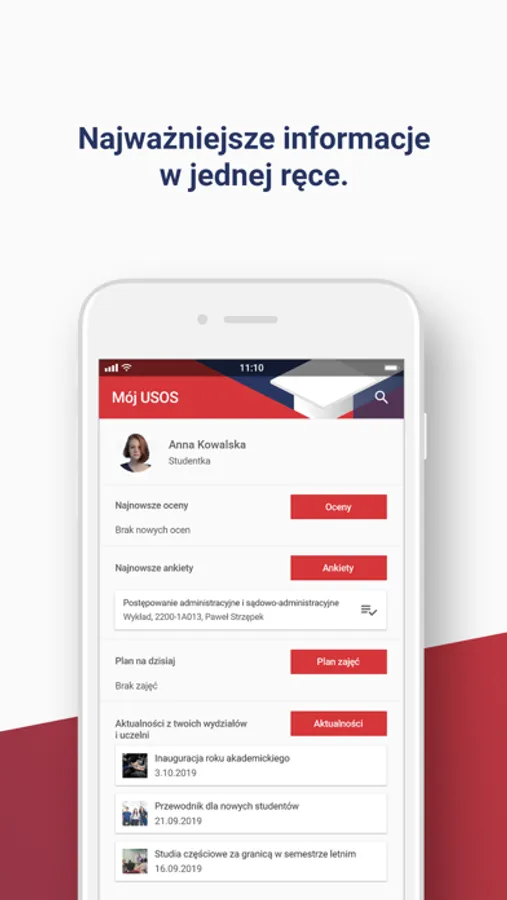 Each university has its own version of the Mobile USOS, depending on the USOS version currently implemented at the university.