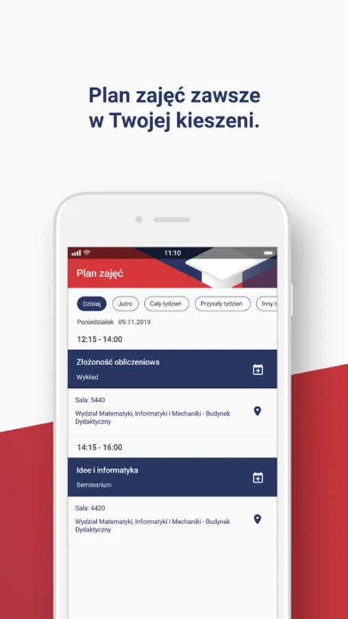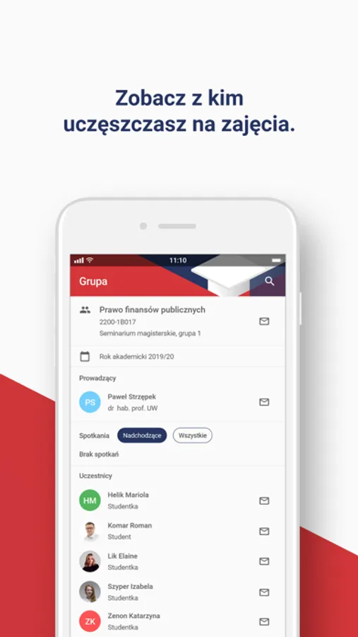 Class groups - information about the course, lecturers and participants are available; the location of classes can be viewed on Google maps, and the dates can be added to the calendar used on the mobile phone.