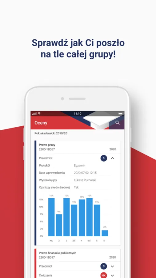 Grades/Exam reports - in this module the student will see all the grades obtained, the employee will be able to complete the grades in the exam report. The system sends notifications about new grades on a regular basis.