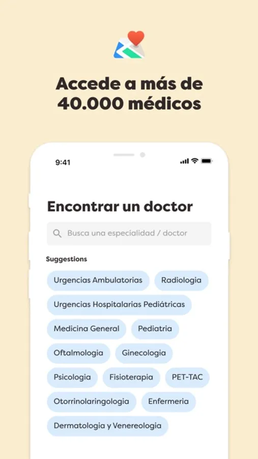 - Encontrar un doctor en nuestra red de más de 40.000 doctores y especialistas en toda España, para recibir tratamiento en una de nuestras más de 1.000 clínicas y hospitales.