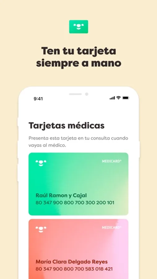 - Acceder a tu tarjeta médica (y a las de tu familia) en formato digital para tenerla siempre a mano (también te enviaremos una tarjeta física).