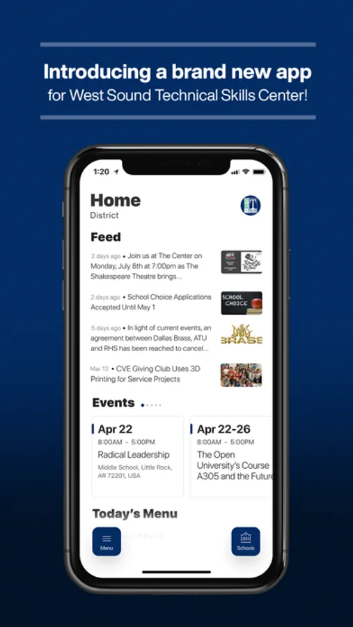 The event section shows a list of events throughout the district. Users can add an event to your calendar to share the event with friends and family with one tap.