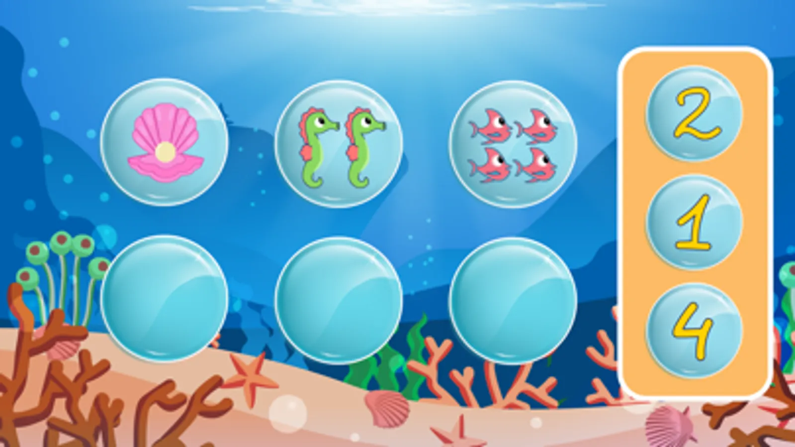 Learning has never been this enjoyable! In the "Bubbles" game, babies, kids and toddlers will pop bubbles to reveal numbers and colors, fostering their understanding of counting and basic arithmetic. In "Matching Fishes," kids will have a splashing good time while honing their memory and concentration skills.