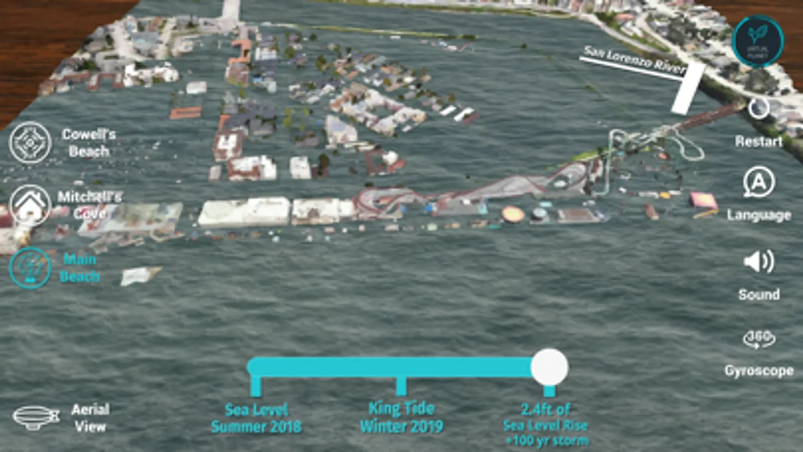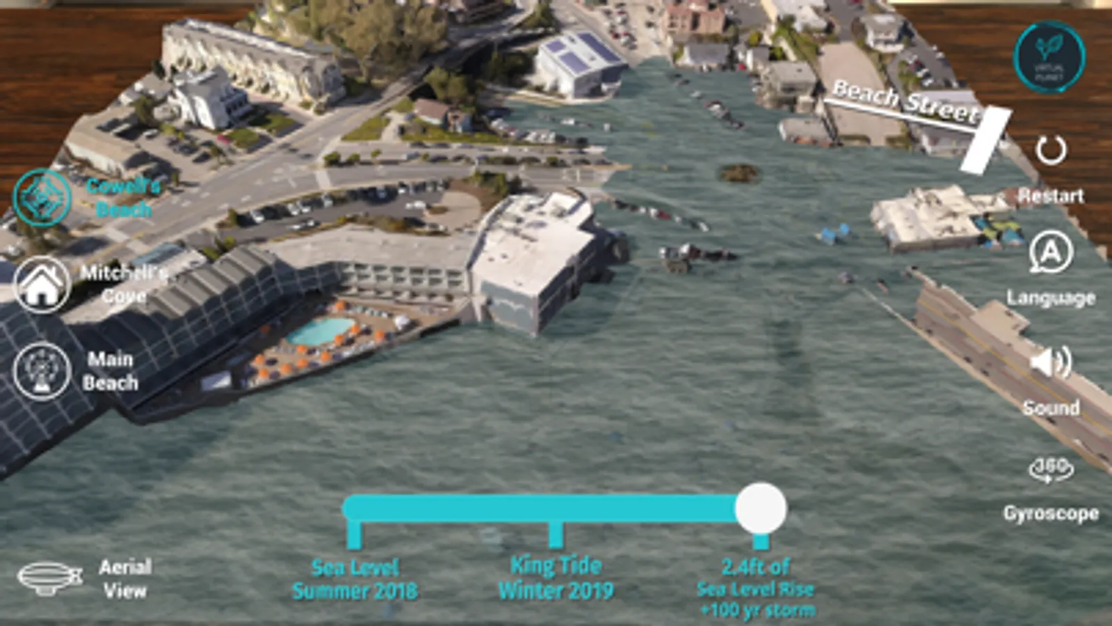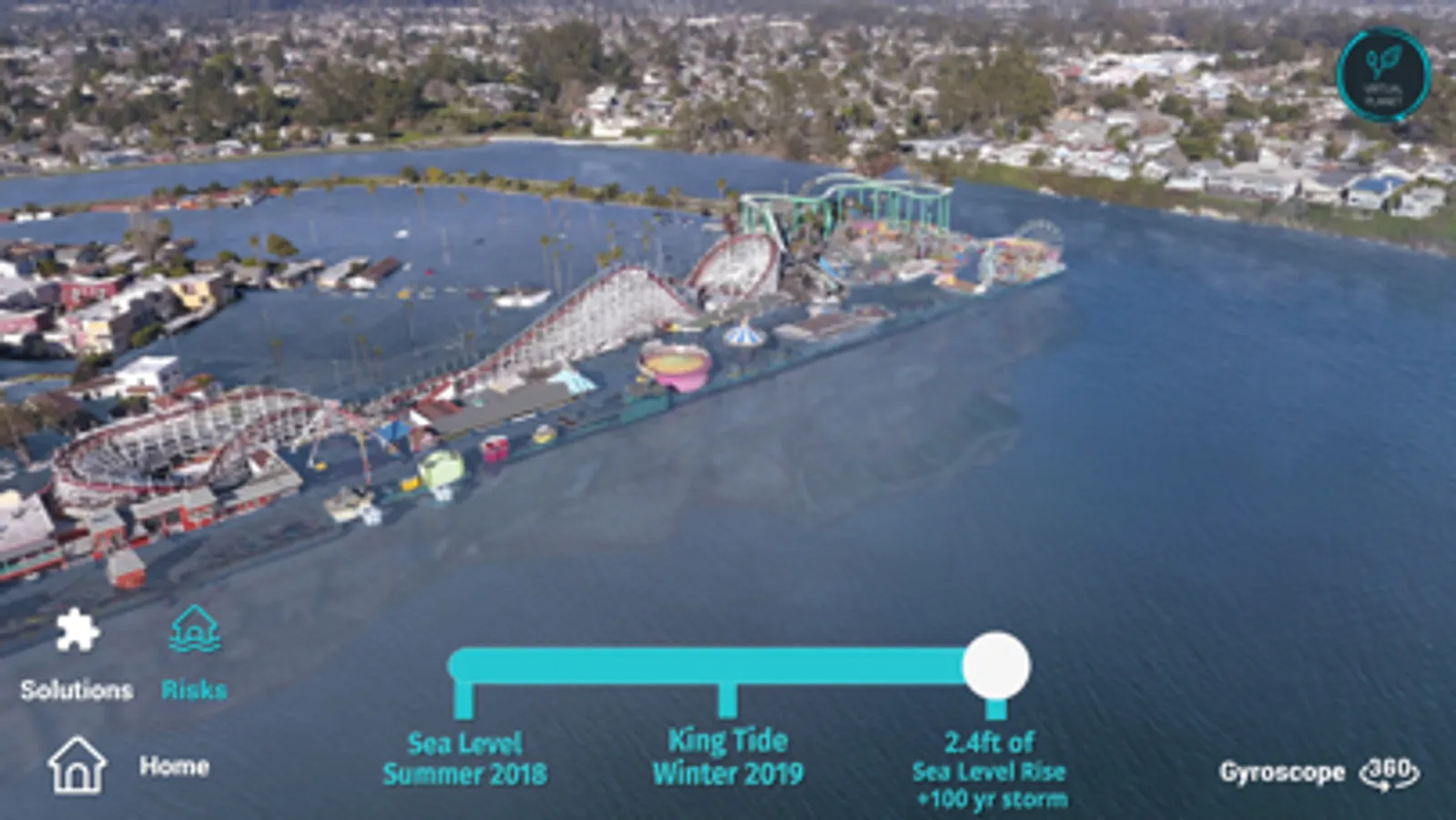 As coastal communities contend with sea-level rise, coastal erosion, and other impacts of climate change, public education has become a critical piece of the puzzle. Virtual Planet Technologies produces highly creative and insightful applications that communities can use to better understand the impacts of climate change and explore emerging adaptation solutions. Our team has a range of expertise from climate scientists, city planners, communications experts, filmmakers, 3D animators, and Unity (software) developers. In our Sea Level Rise Explorer, users interact with 3D models and can raise sea levels to observe potential flooding in real-time. Adaptation scenarios can also be displayed.