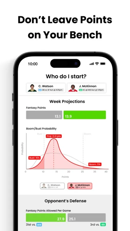 Compare players each week based on the most predictive metrics using a range of outcomes approach custom to your league settings.