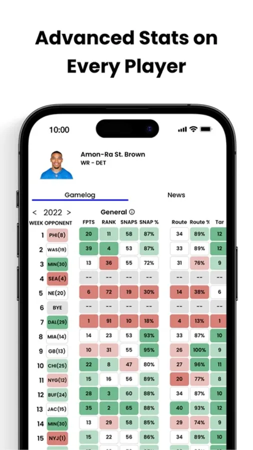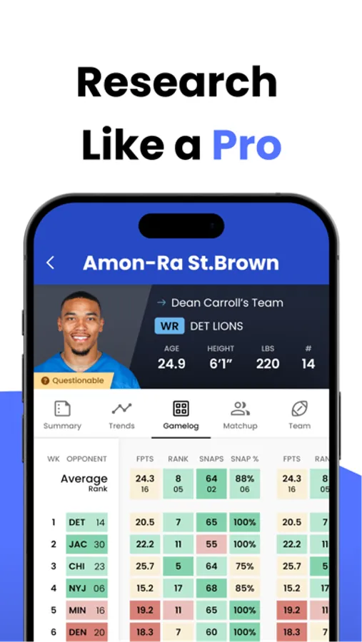 Easily compare game matchups and advanced player stats for NFL, NBA, and MLB.