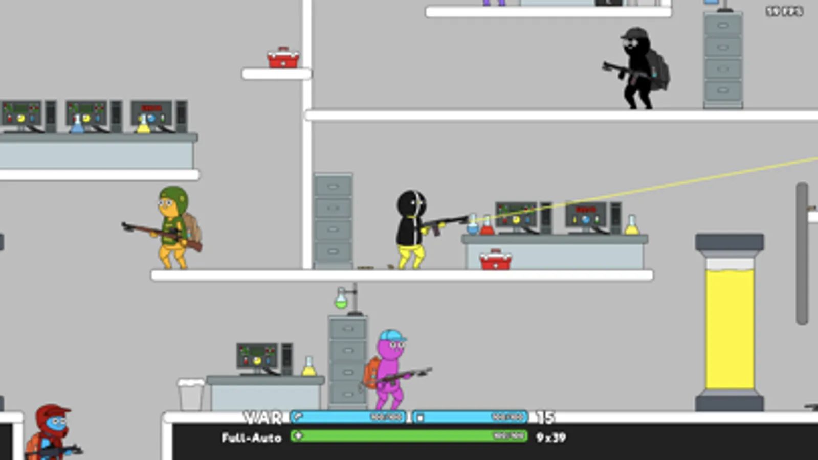 Raid Rush is an action-packed platform shooter. Unlock new guns and armor and go up against tough enemies on several different maps. Eliminate enemies and complete tasks to level up and access better gear.