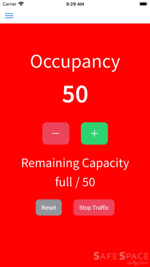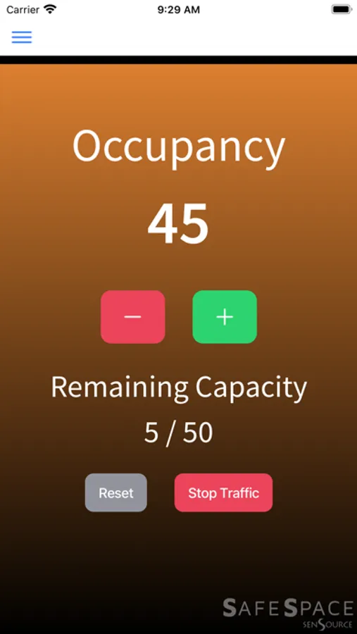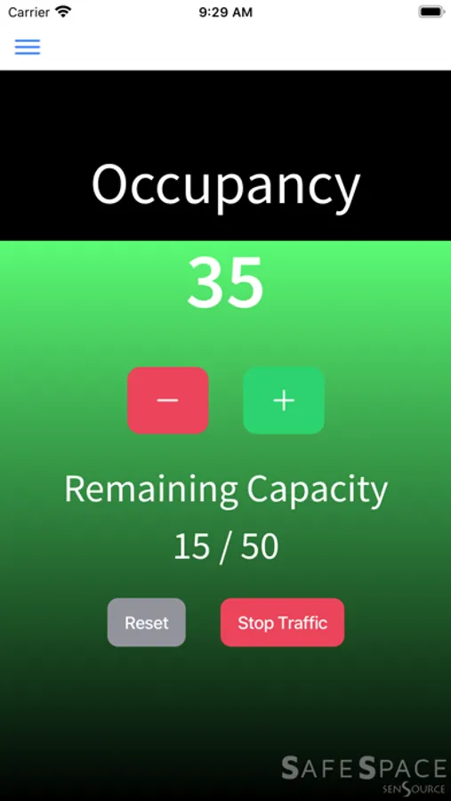 Simply download the app, input your space code, and begin tracking or watching your live occupancy. Works with door greeters (manual counting) or our advanced sensors. Requires an existing SafeSpace subscription.