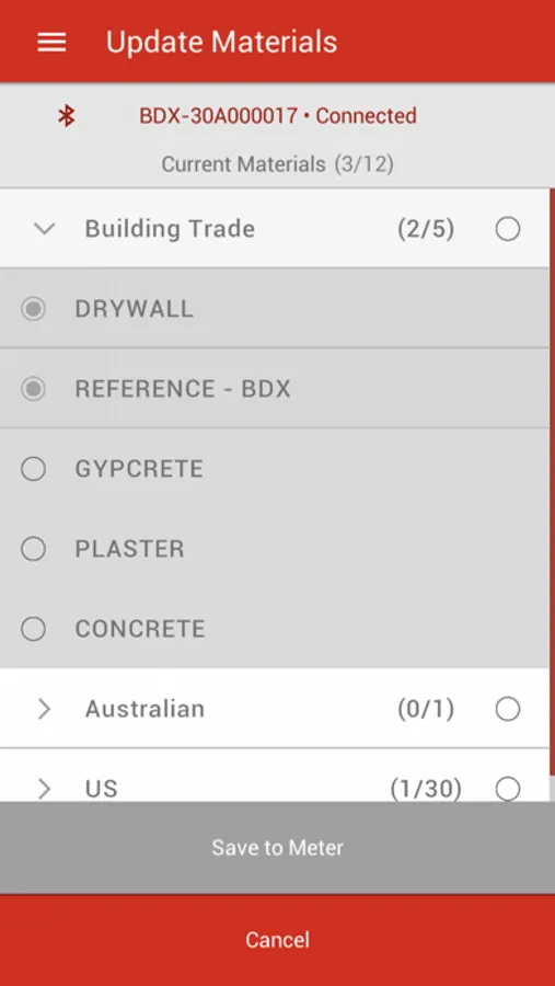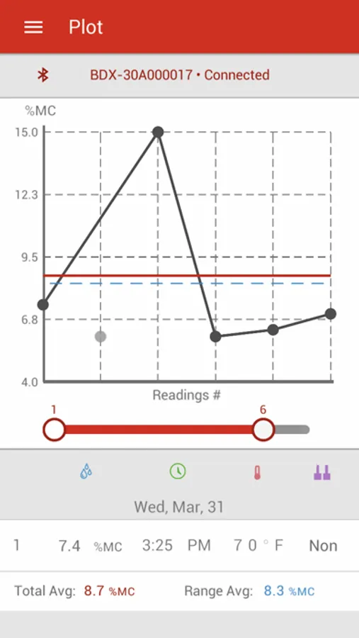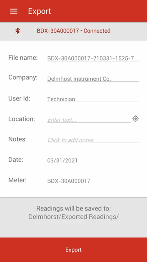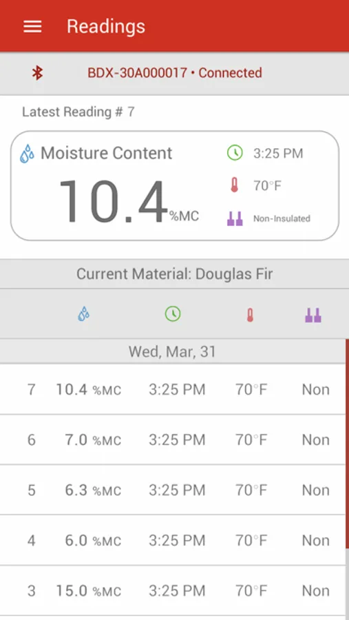 A companion application for Bluetooth-enabled Delmhorst moisture meters. This application allows users to retrieve readings taken on their moisture meter, view trends and statistics based on those readings, export reports via email, and customize the functionality of their meter.