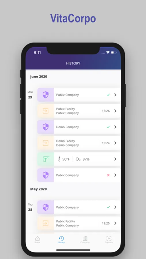 VitaCorpo helps employers / schools safely bring employees / students back to work / school while minimizing risk & liability for their business. Our platform allows employees / students to verify their temperature, lung function and health questionnaire against your companies workplace standards before leaving their homes.
