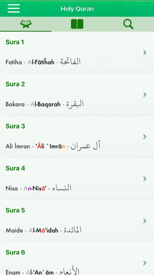 - Search full-text content of the suras Search