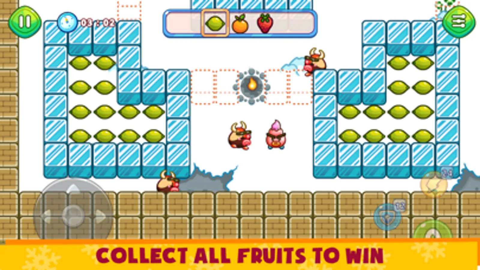 Jump out of the ice cream cone and start your adventure in the icy lands with the popular puzzle game, Watch out for the frost monsters! Their brains are frozen, so they won’t stop when you get in their way! Break the ice cubes with your frost breath or create and use them as obstacles to trap the monsters!