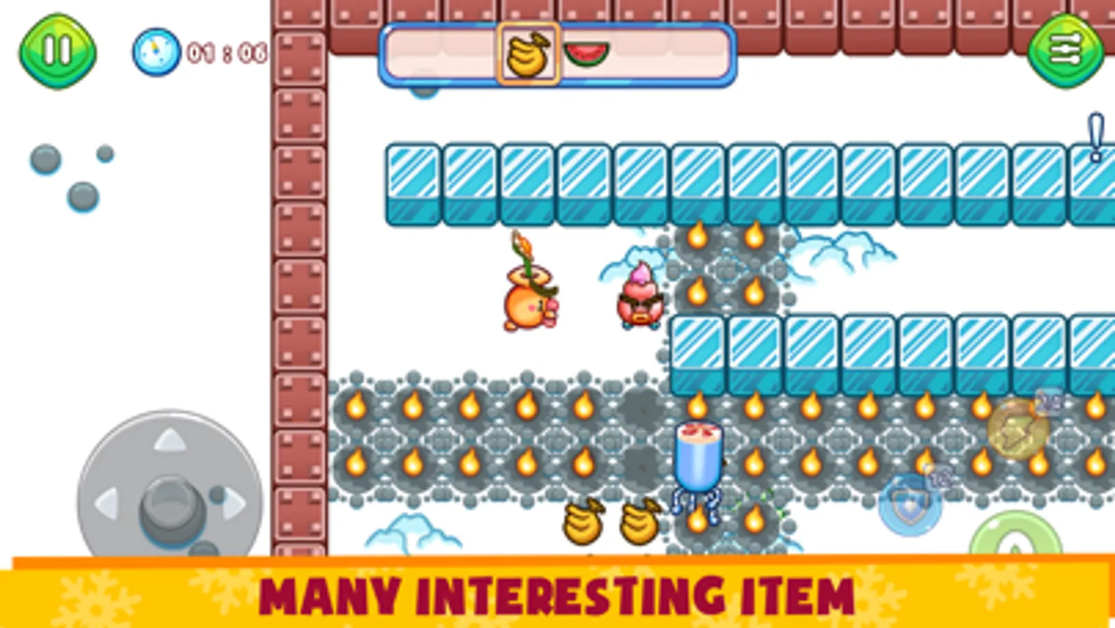- Collect fruits and items on the Map in the shortest time to achieve a high score