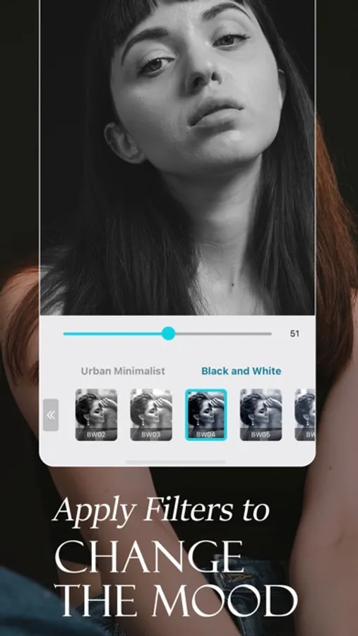 • Filter – Apply your style with exclusive color filters.