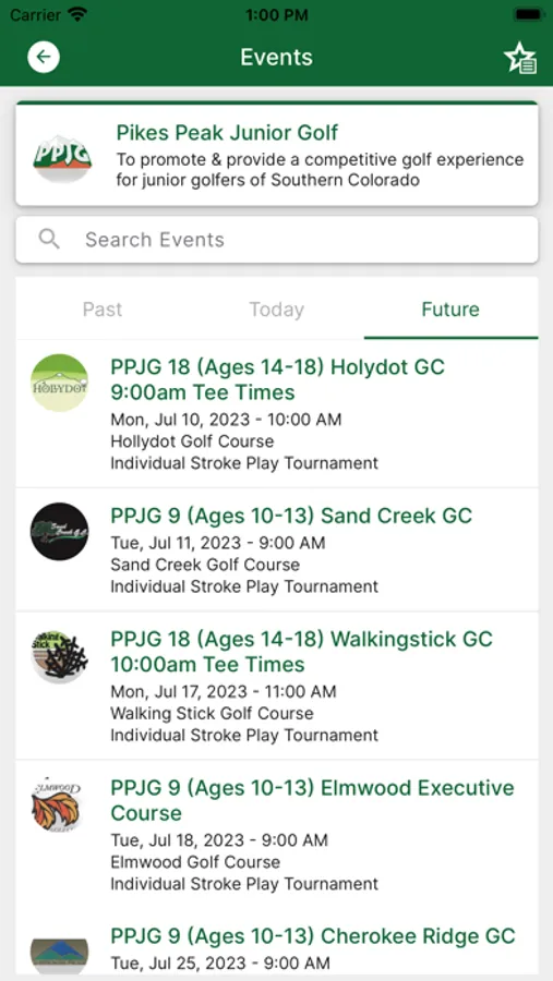 The PPJG (Pikes Peak Junior Golf) App combines mobile and desktop application technology to allow golfers to view live leaderboards during events and tournaments. On game day, just enter your scores into our easy-to-use scoring interface to let spectators and competitors keep track of your round in real time.