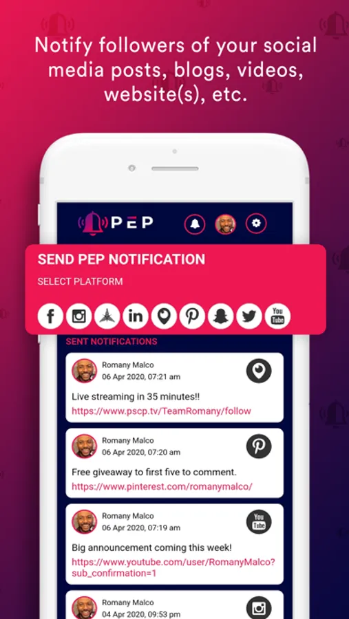 3) Use PEP to notify your followers of posts made to any social media platform.
