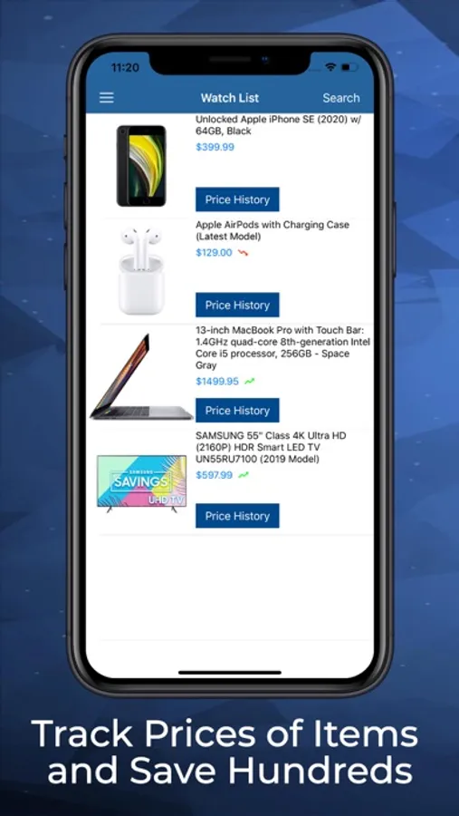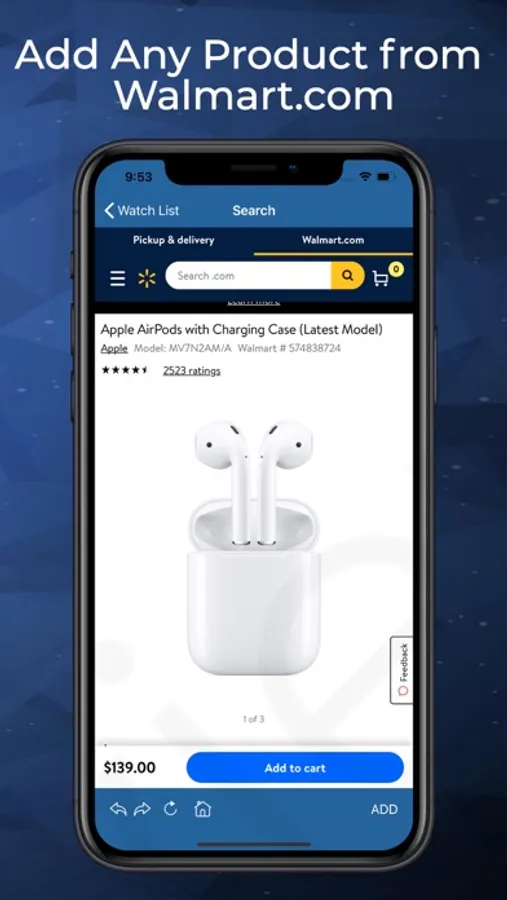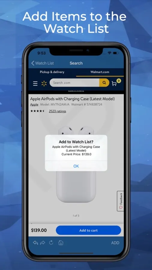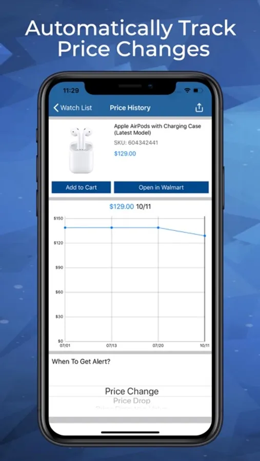 Add products from the Walmart.com to the watch list and track their prices. Price history tracking updates anytime items are viewed in the app.
