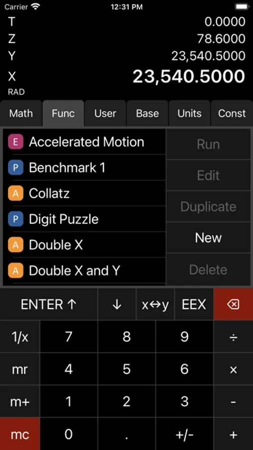 ThetaCalc is a RPN (Reverse Polish Notation) calculator which can be extended by functions and equations programmed by the user in JavaScript.
