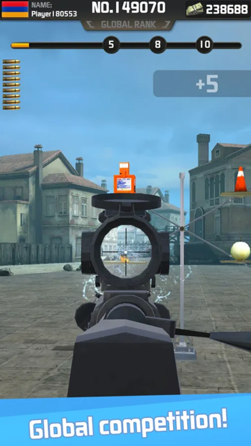 Keep practicing and shooting range target, we are going to help you to improve your gun shooting abilities. You need to get used to shooting anywhere, archery field, port, warehouse, and other places where you can't imagine at all. The only purpose of putting you into different places is helping you avoid disturbance from outside. And the targets are moving all the time, the shooting difficulty increasing through you complete level by level.