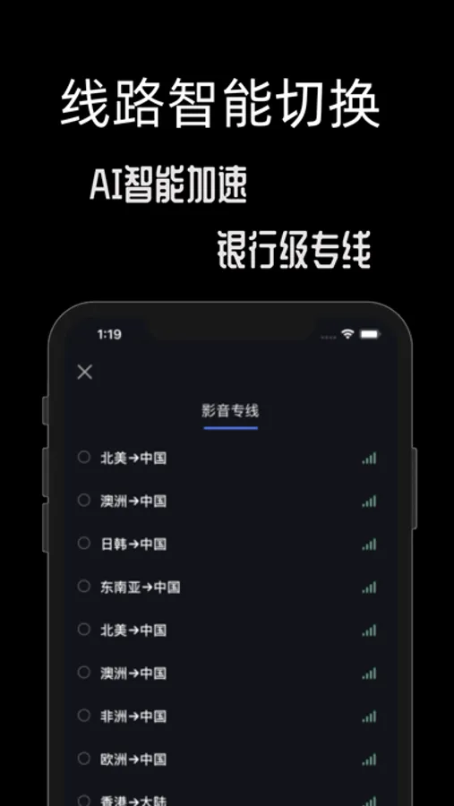 根据您的位置及网络状态,为您智能选择最快速的通道