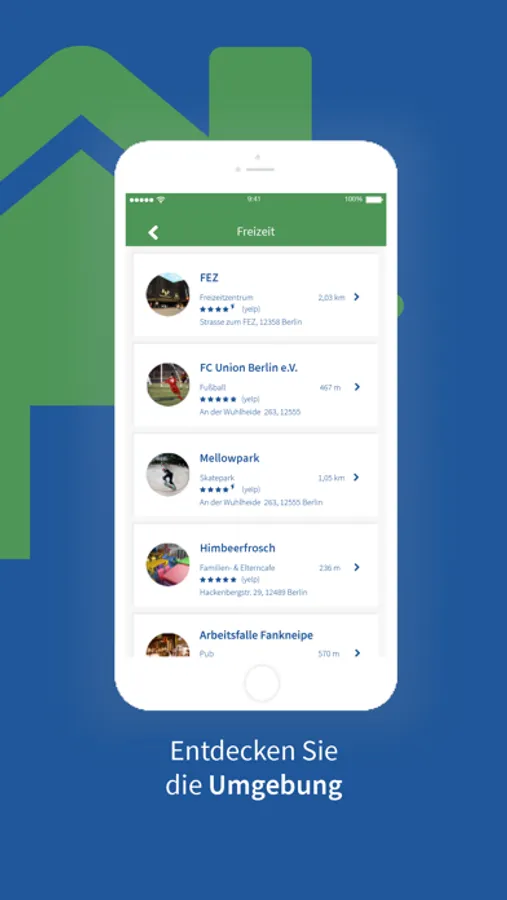 Informieren Sie sich z.B. über Geschäfte, Ärzte, Erstatten und über die Öffnungszeiten in Ihrer unmittelbarer Umgebung.