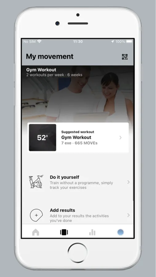 MY MOVEMENT: What you’ve chosen to do: here you will find your programme, classes you’ve booked, chal-lenges you’ve joined and all the other activities you’ve chosen to do at your facility
