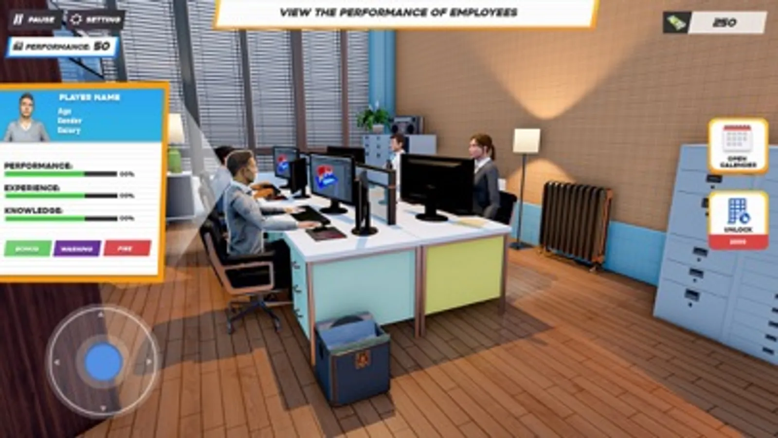 Play as a virtual manager, hire employees to increase the productivity of business and expand. Hire the most suitable candidates, check employee performance, and expand the office. Manage the office, increase revenue, and expand the business.