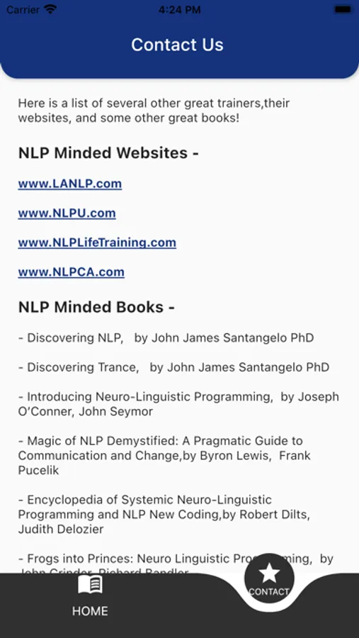 You'll want even more results and benefits from this NLP app, so check out our full NLP practitioner training courses: www.LANLP.com. Or, our new Introduction to NLP book: entitled “Discovering NLP” on Amazon or Discovering NLP dot com.