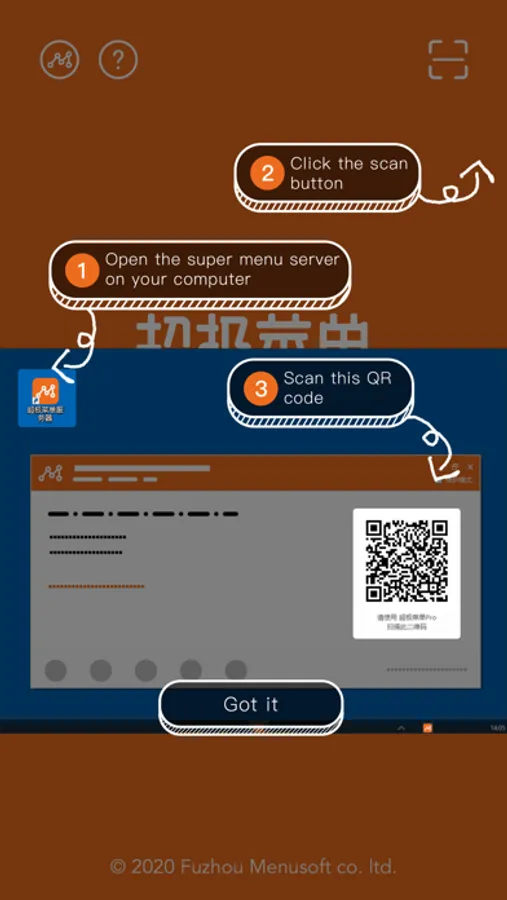 1. simple configuration by scanning the QR code to connect to the order server.