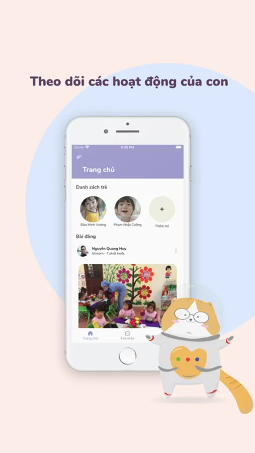 Ứng dụng dành cho phụ huynh theo dõi hoạt động của trẻ khi đến lớp.