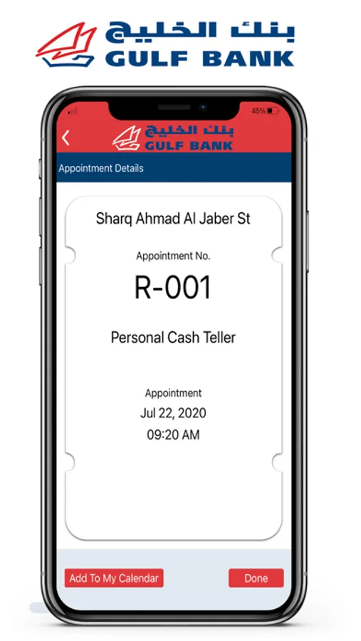 No more waiting! “Visit Gulf Bank” our automated smart mobile queuing app, allows you to book your spot in line anytime, anywhere.