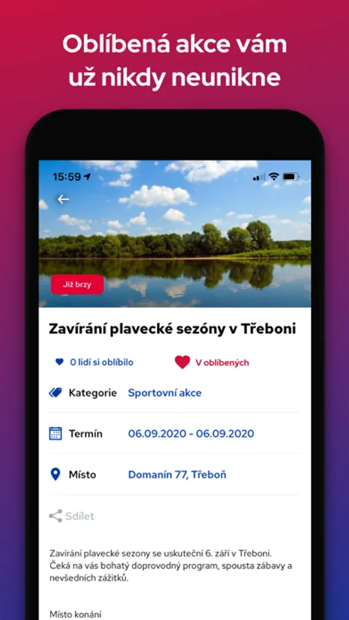 • přidejte si událost mezi oblíbené, aby vám neunikla